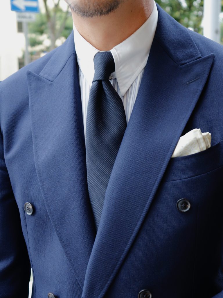 美しく作ることができるディンプル。スーツ生地ならではの主張しすぎない上品な光沢が抜群のバランスです。