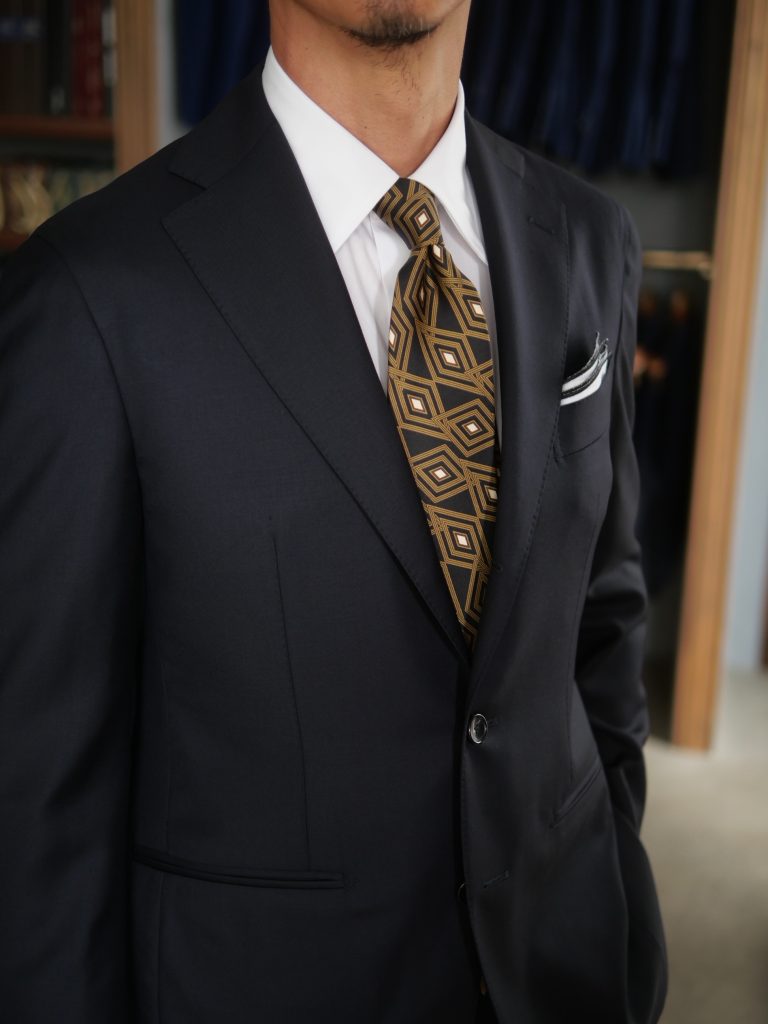 今回は知人の結婚式へ参列用途のことでしたので、人とは被らない上に、程よく華やかな”ブラック&ゴールドのネクタイをセレクトさせていただきました。めちゃくちゃカッコいいですね!!(このネクタイ、私が買おうと思ってたのに〜。。。)