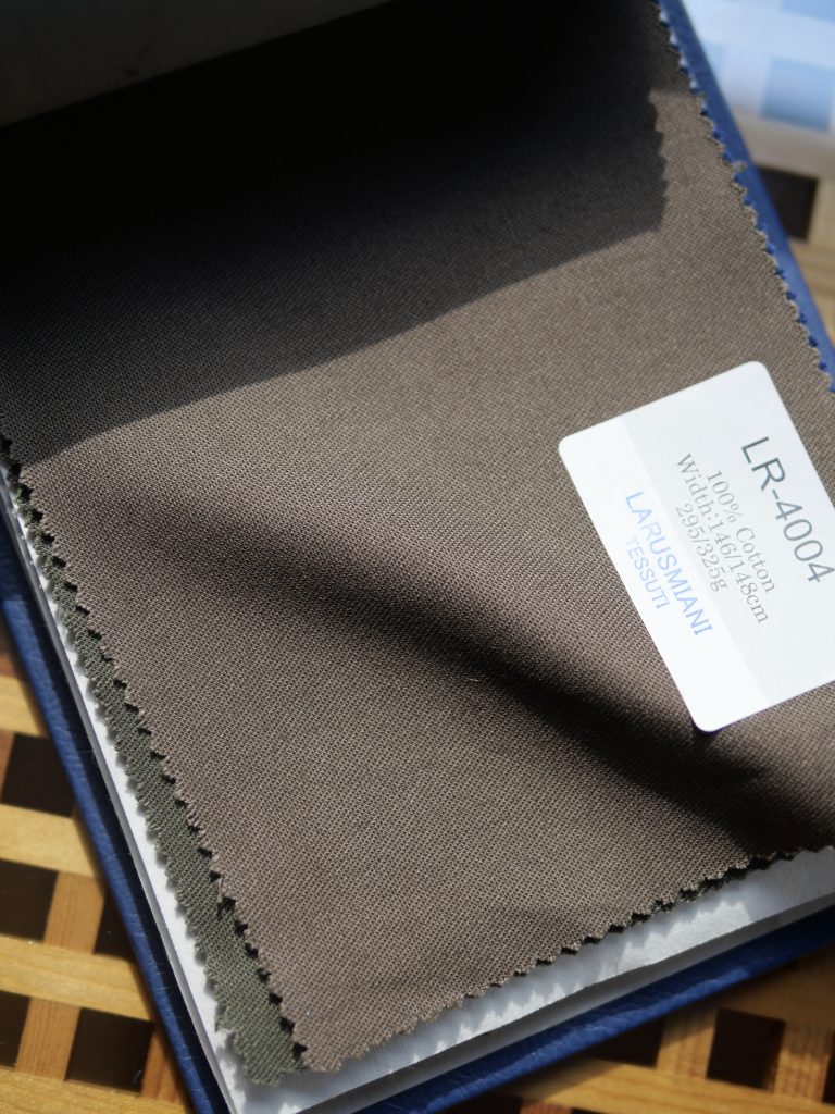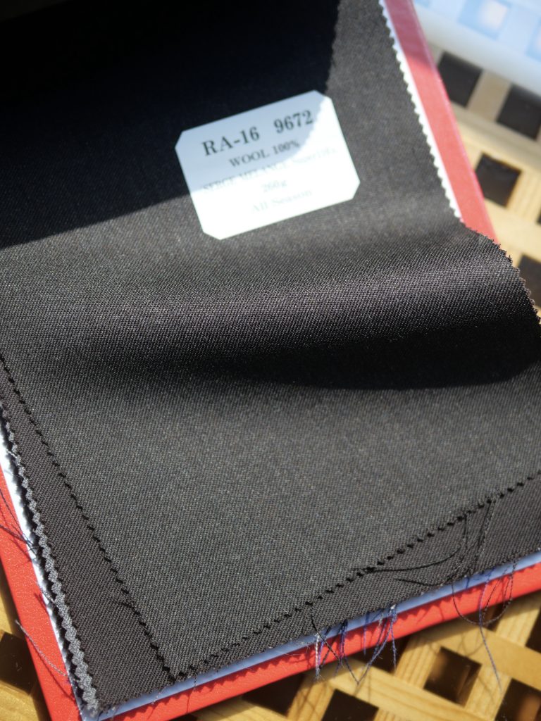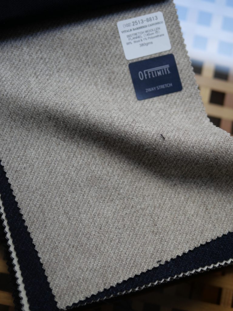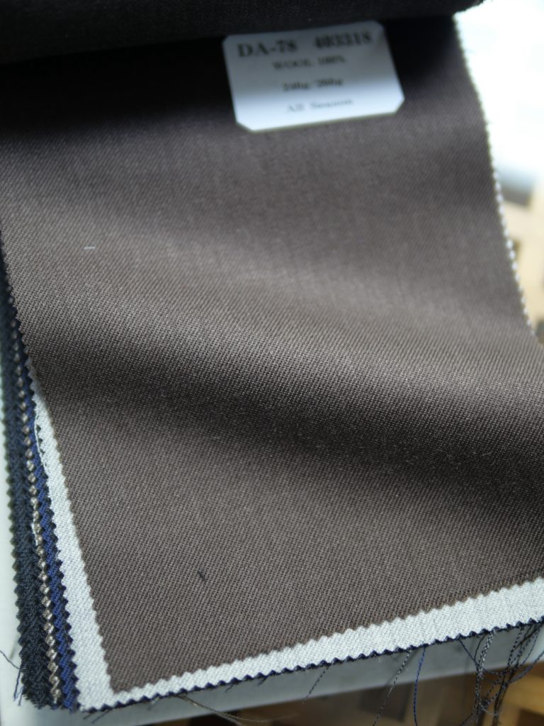 傾向としましては、WOOL100%、ツイルの300g前後の生地が非常に多いように思います。秋、冬、春の3シーズンを乗り切るには丁度良い生地感です。