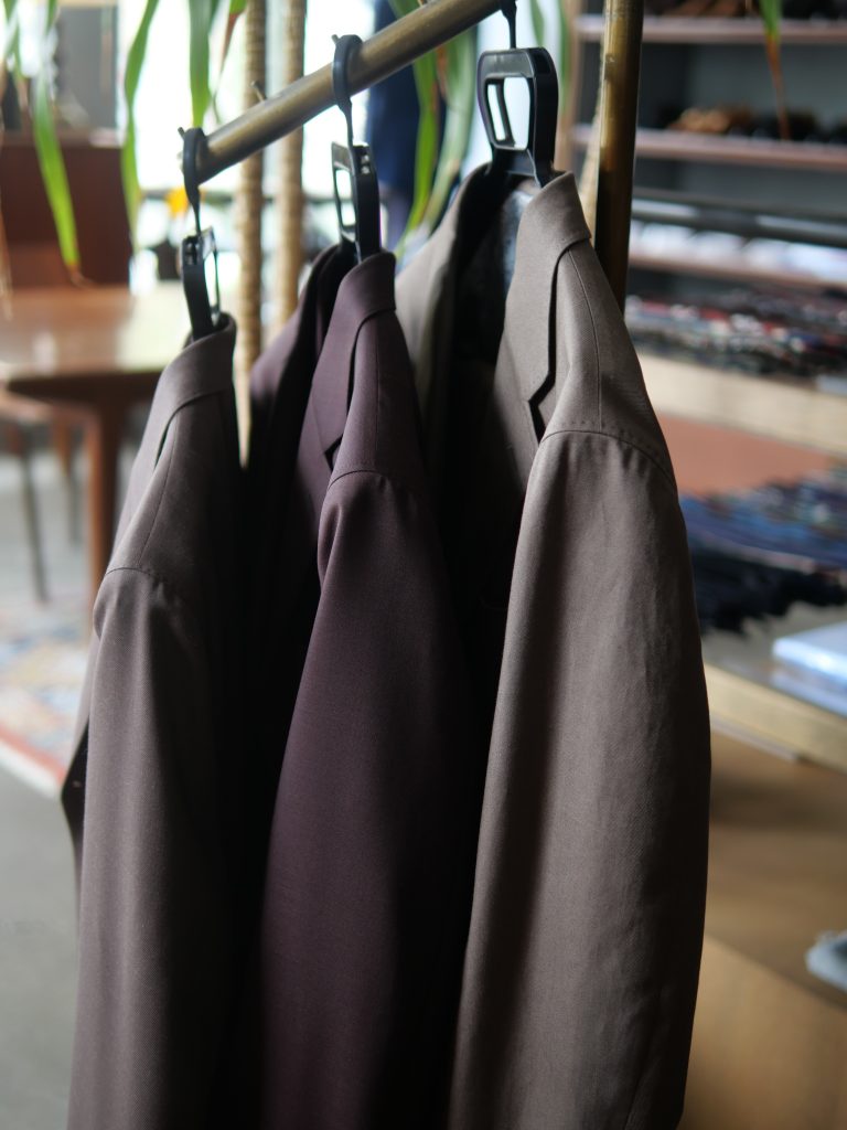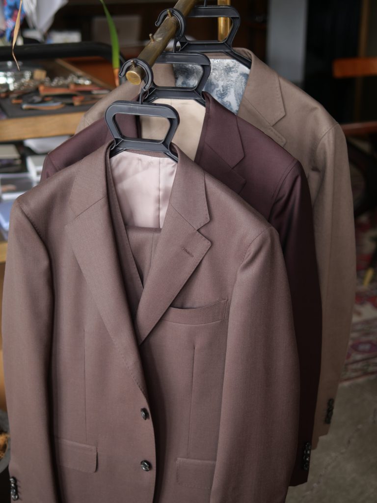 本日仕上がってきたスーツを見てもわかるように、同じ色(今回はブラウン)だとしても、明るい、暗い、色合い、または素材が異なります。