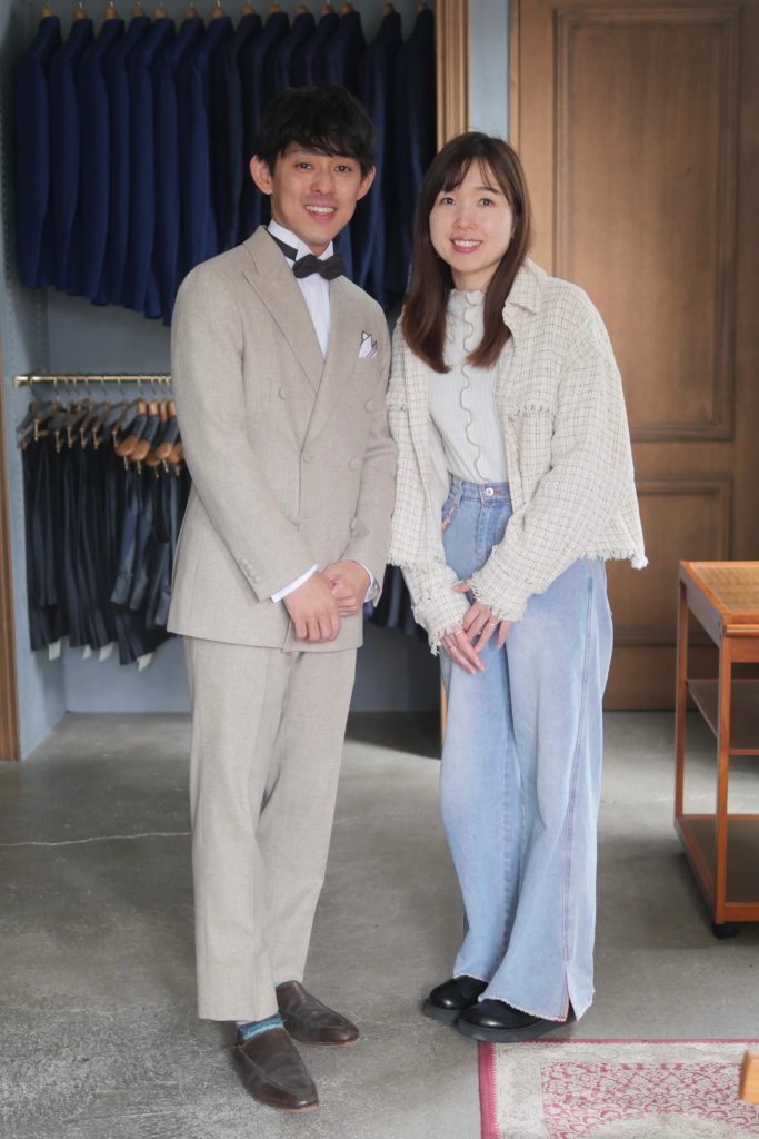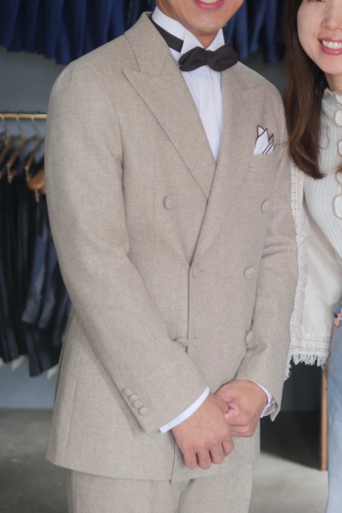 寒い季節の挙式かつ、カジュアルな雰囲気をご要望ということで、今回はフランネル生地にて新郎衣装をご注文いただきました。柔らかな風合いのお色味が、新郎様のお人柄ともピッタリで非常にお似合いです!!