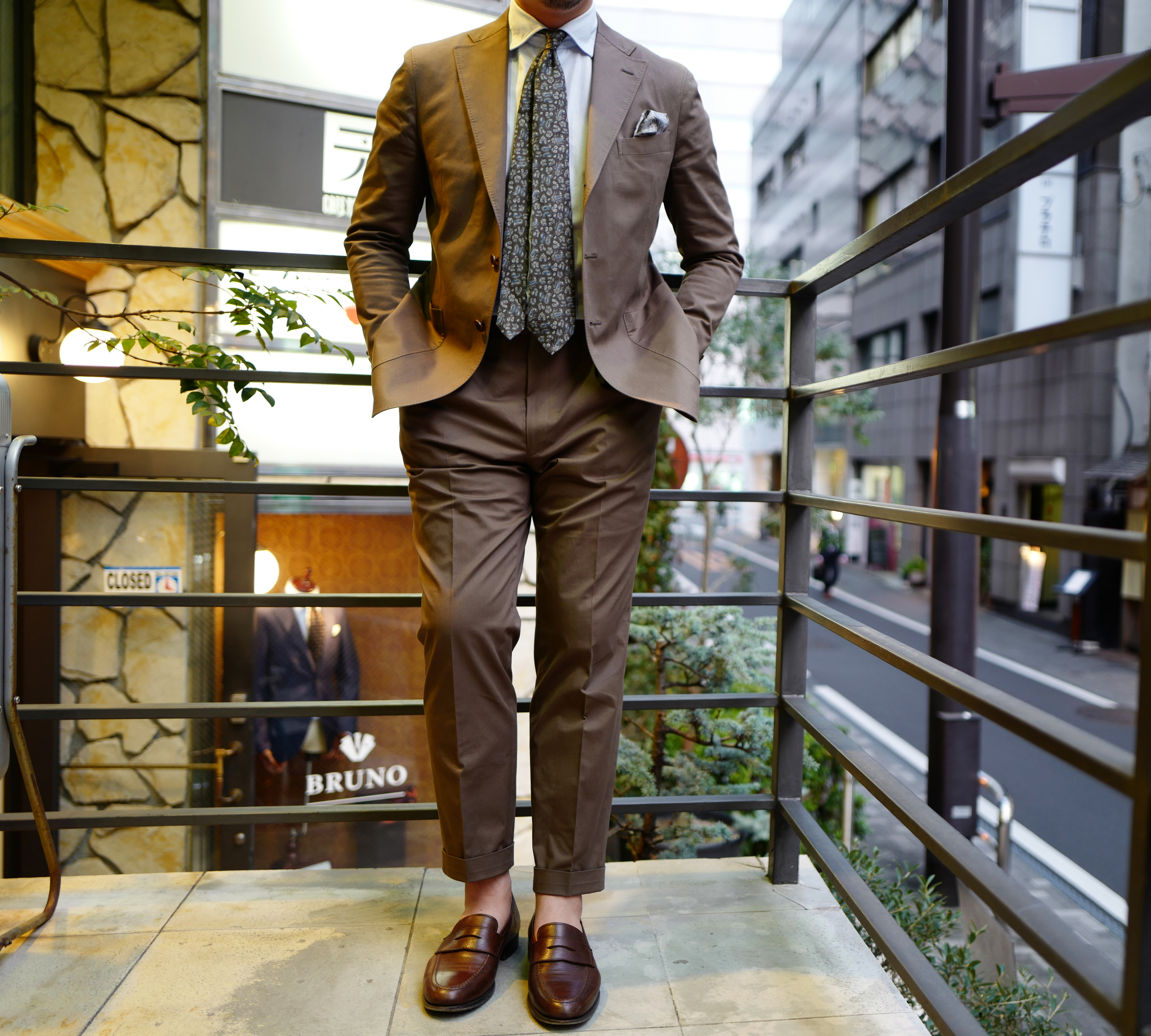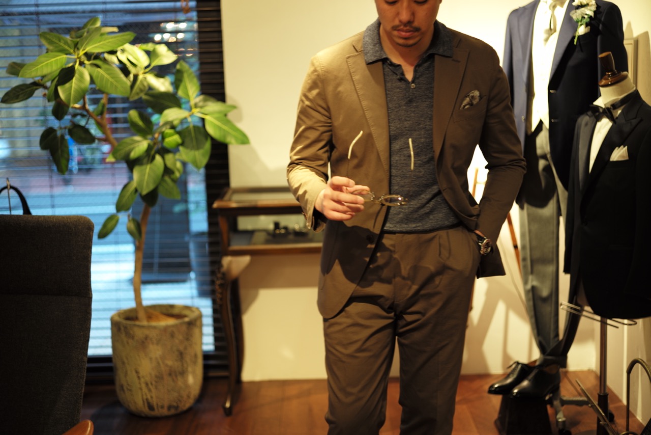 先日紹介させていただきました、私のオーダーコットンスーツを覚えていらっしゃいますでしょうか。カジュアルな生地でもきっちりとしたサイズ感と、タイドアップでビジネススタイルを提案致しました。