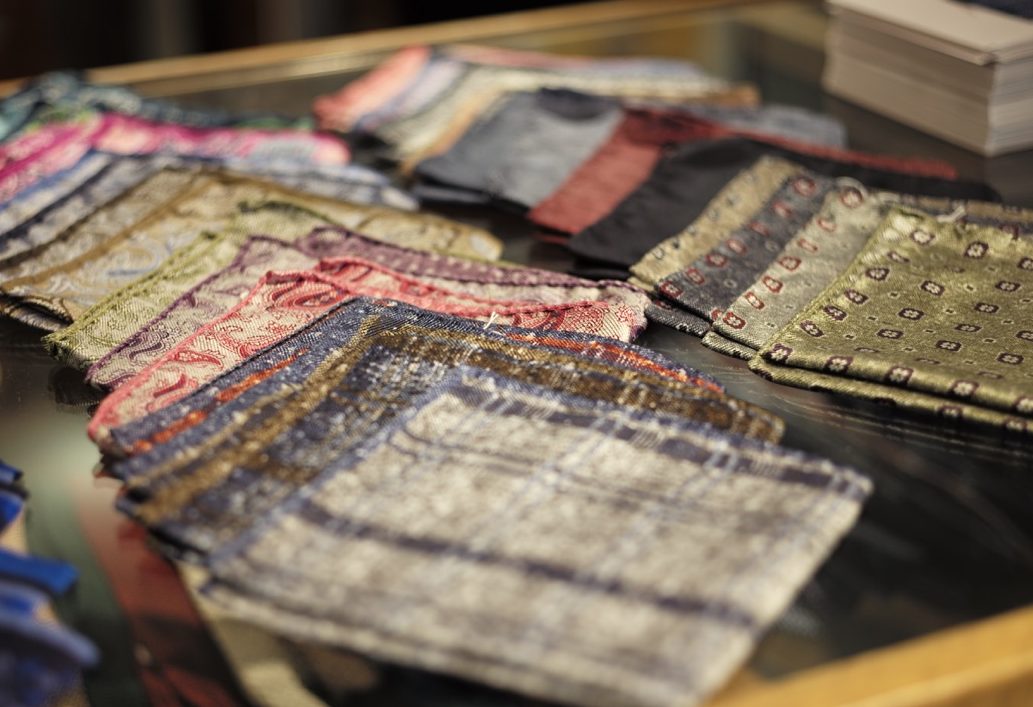 追加入荷分は、豊富に種類を取り揃えました。あらゆるスタイルに適応できるチーフが多いと思います。ぜひ店頭にて表裏の表情をごゆっくりとご覧ください。