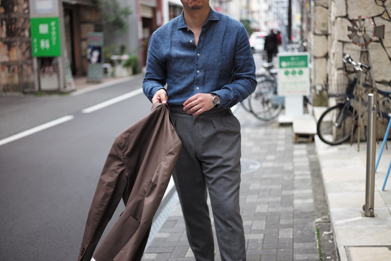 はい。そんな2日間で私のリフレッシュも完了。本日からお仕事を、張り切ってこなしております。ちなみに、本日の私はリネンのシャツを着用。これから季節をイメージしてオーダーするのであれば、リネンのスーツ、リネンのジャケット、リネンのシャツなど。とにかく季節感を大切に創っていくと、より通で洒落た着こなしが完成するのではないかと思います。ぜひ素材にも注目して”あなただけの1着”を創ってみてください。