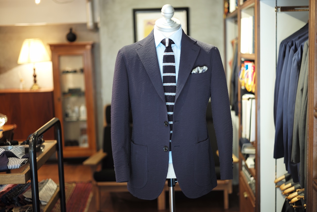 本日はK様のオーダージャケットを紹介させていただきます。これから季節には、丁度良いシアサッカー生地のジャケットです。以前にもこちらの生地をバンチブックにてご覧いただきましたが、実際の仕上がりの良さは想像以上です。