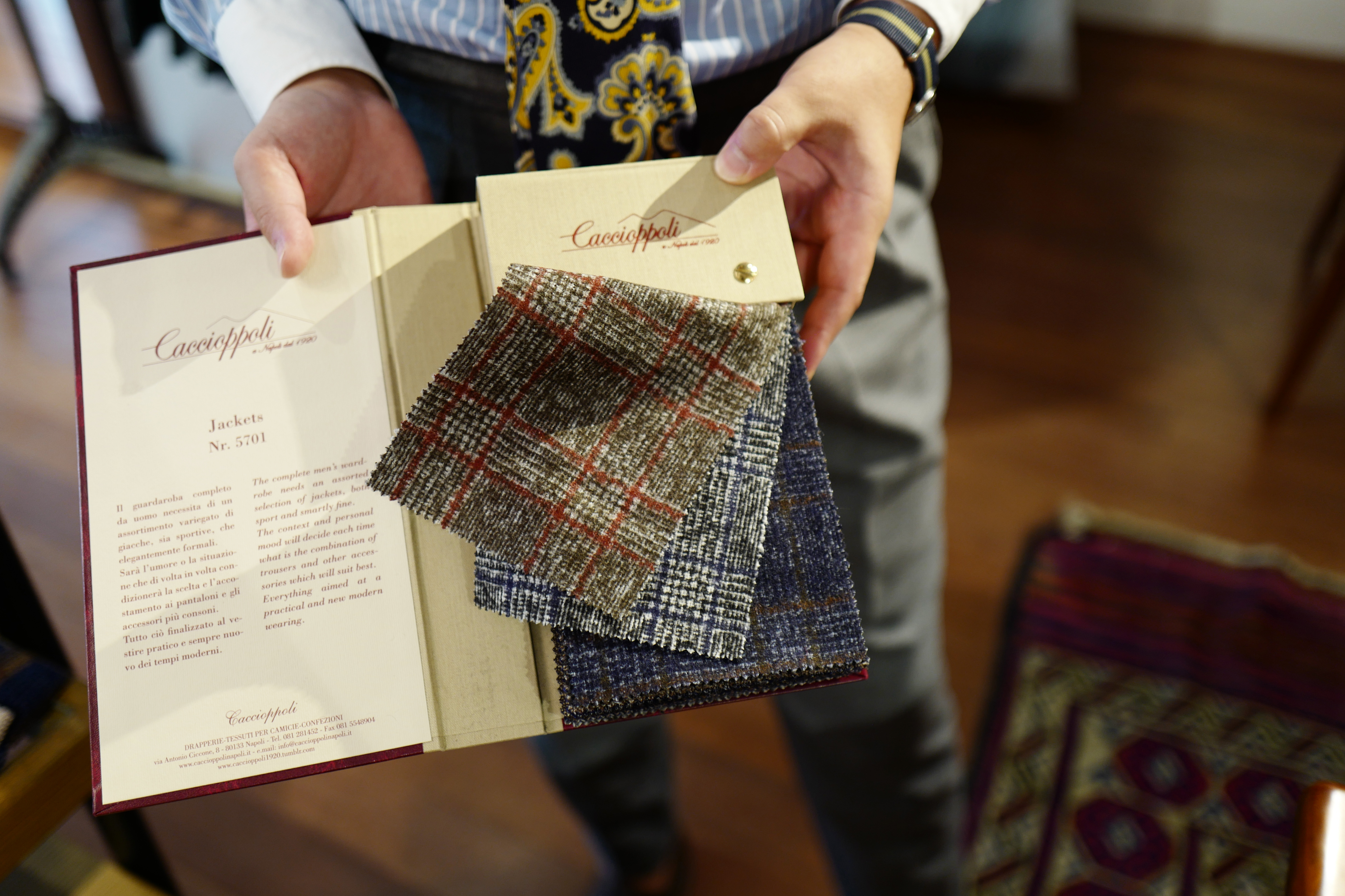 昨日少し触れましたが、さらに2017AWバンチブック(生地見本帳)が入荷してきております。今回は相対的に高価な価格帯にも関わらず、非常に多くのオーダーをいただきます、ナポリの生地ブランドCaccioppoli(カチョッポリ)です。
