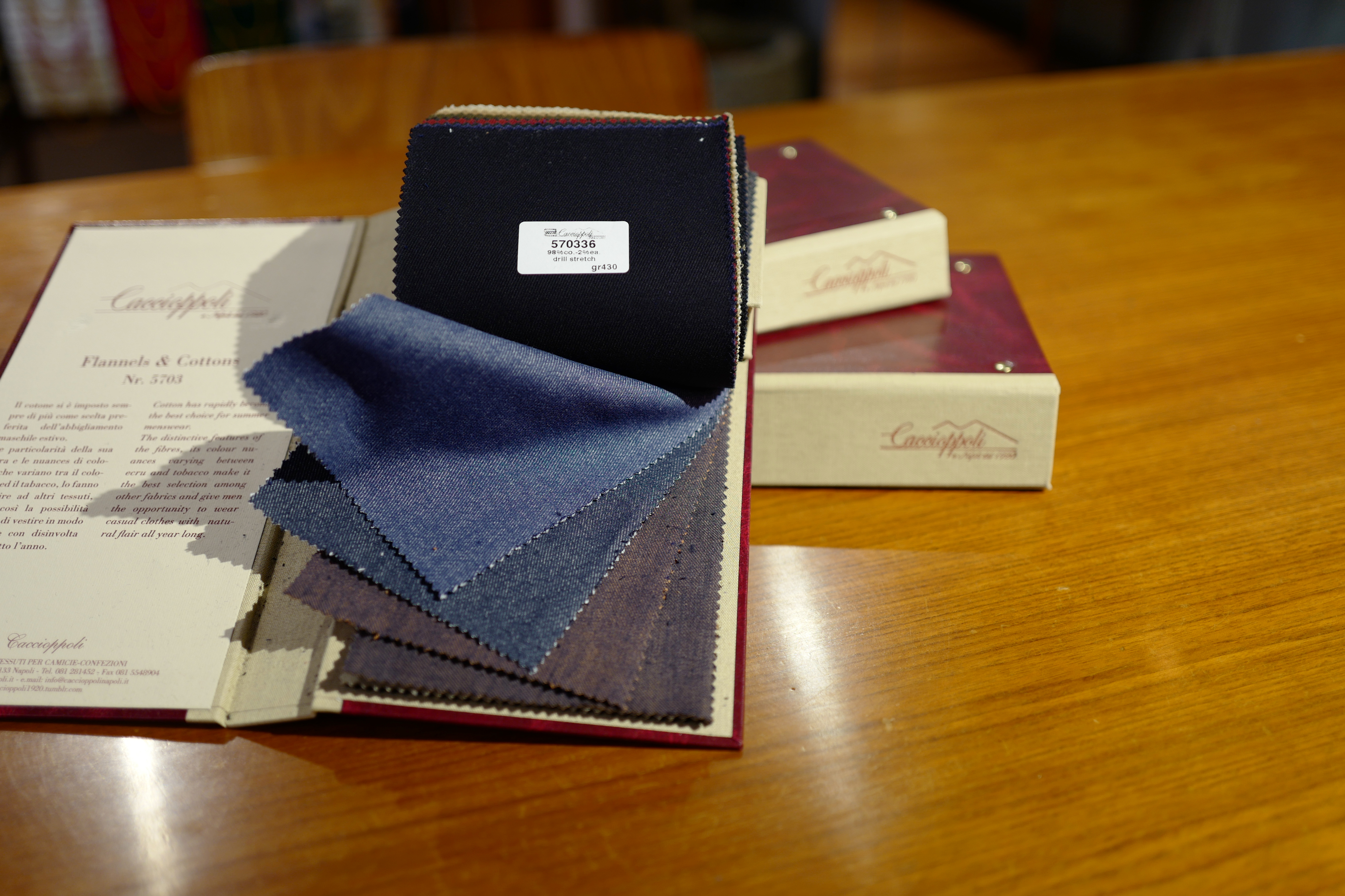 約40年間Caccioppoli社が提案しているフランネル素材に、人気のコットン素材を加えたミックスコレクションです。スーツ以外にも、コーディネート用パンツとしてバリエーション豊富なカラーを多数取り揃えました。機能性を兼ね備えた伸縮性のあるストレッチコットンもオススメです。