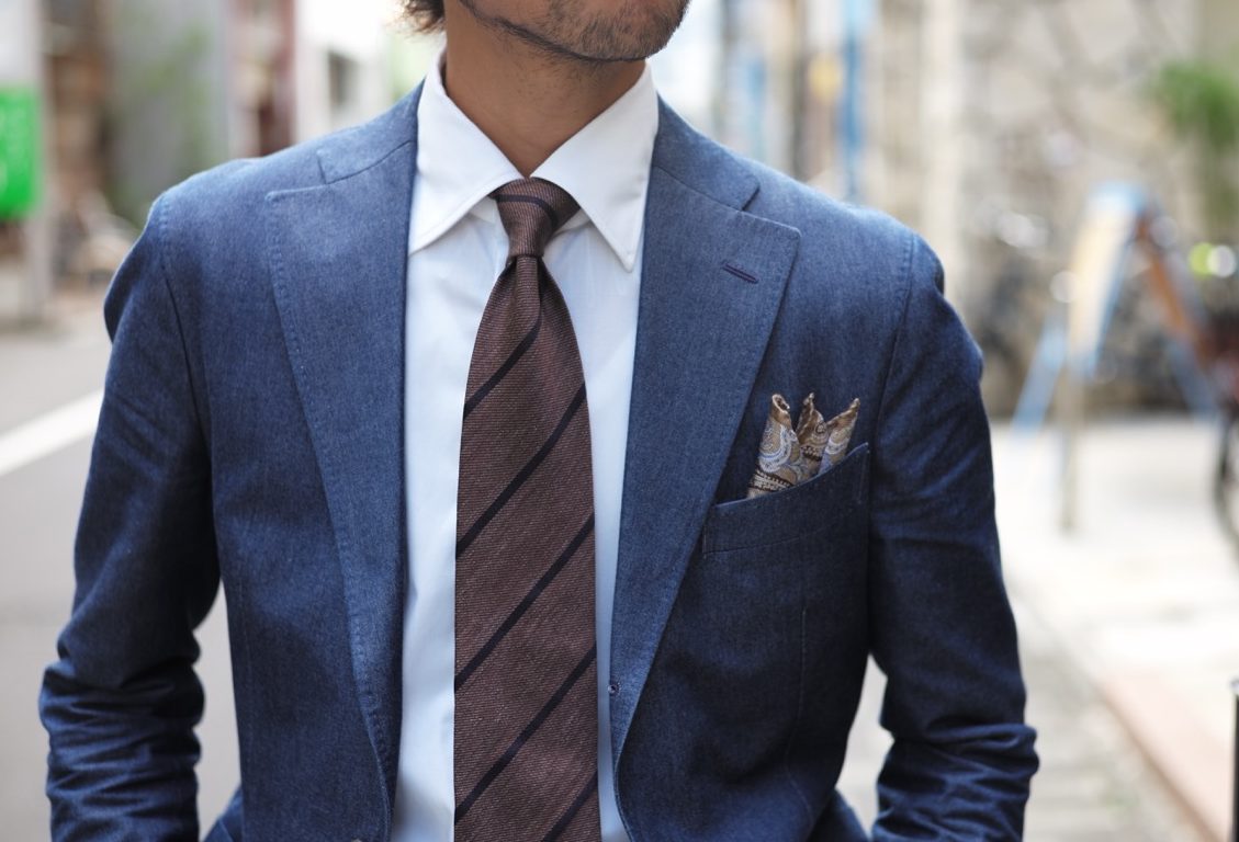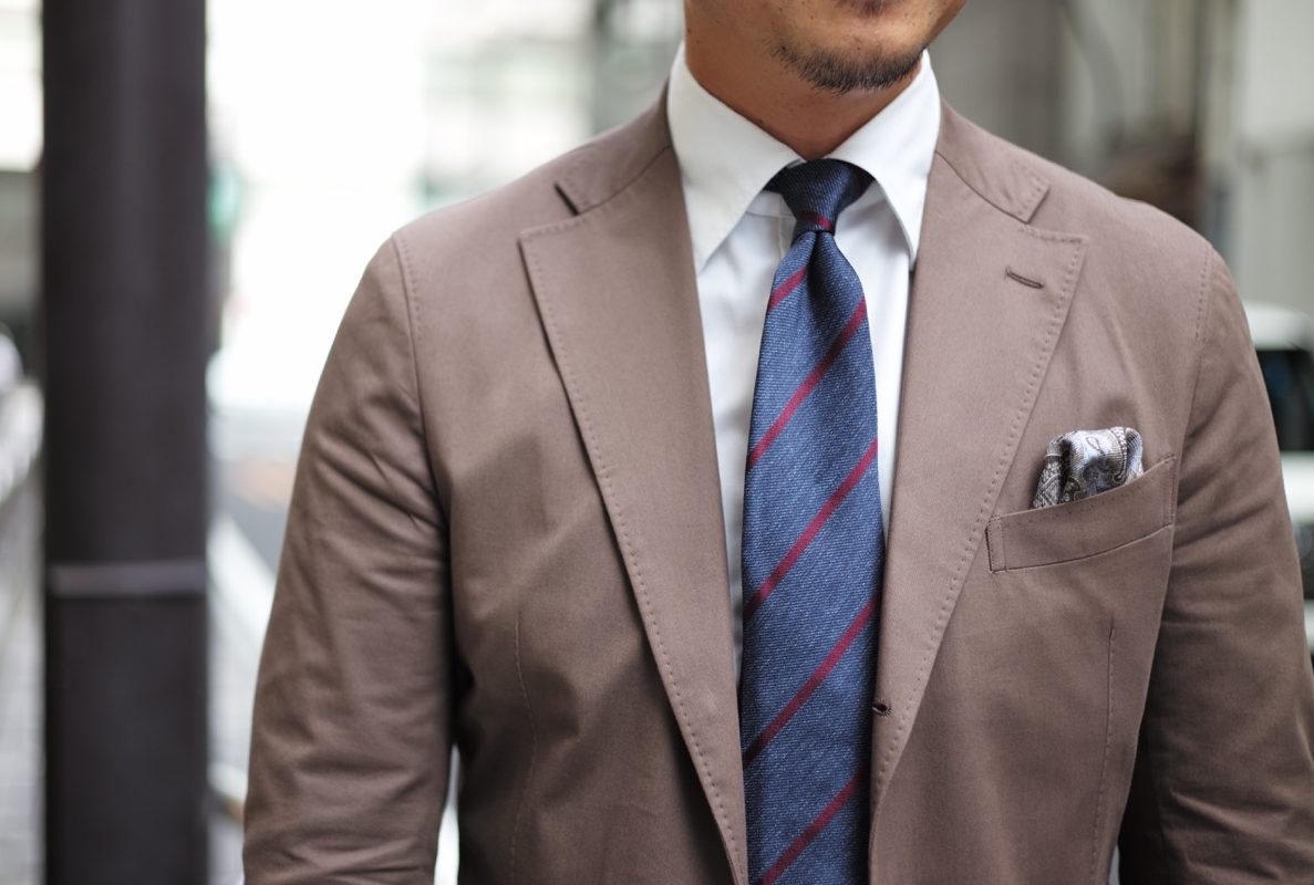 毎シーズン大人気のBRUNOのTIEは、全てイタリアの工房にて、現地の職人の丁寧な作業から生産されております。ディンプルが作りやすいのも特徴の一つで、写真の通り立体的なVゾーンを演出します。そんな拘りのBRUNOオリジナルTIEですが、私どもがTIEの色柄選びの基準としているのは、①トレンド感②コーディネートのしやすさ③自分自身が付けたくなる。の3点です。特に大切にしているのは③の自分自身が付けたくなるという点。店頭にて素材感や結び心地をご体感いただき、そんな想いをぜひ感じてください。