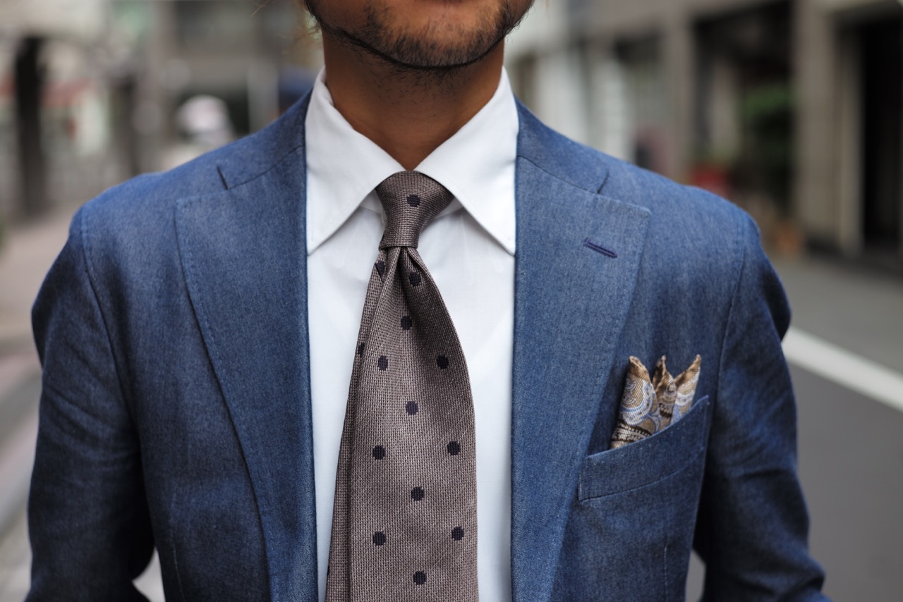 ■ドット ブルー×ブラウン Silk100% 10,000yen+Tax