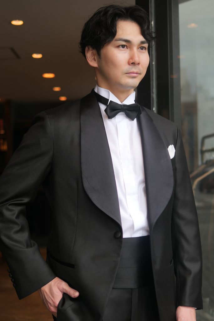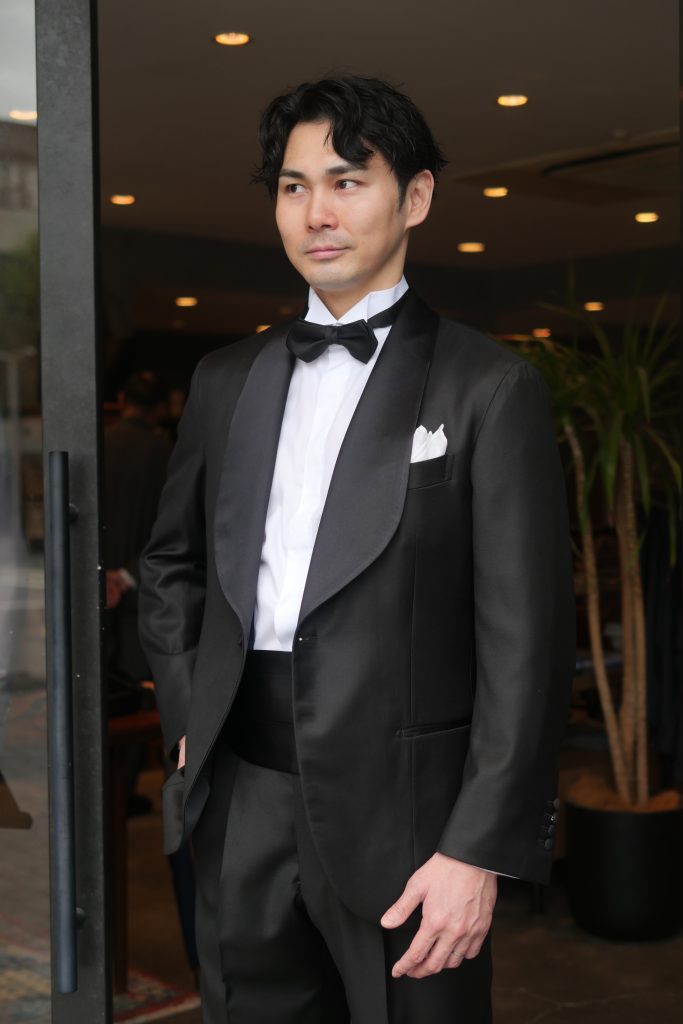 12月にご自身の結婚式を控えるS様のオーダータキシードです。まさにこれが王道のタキシード。