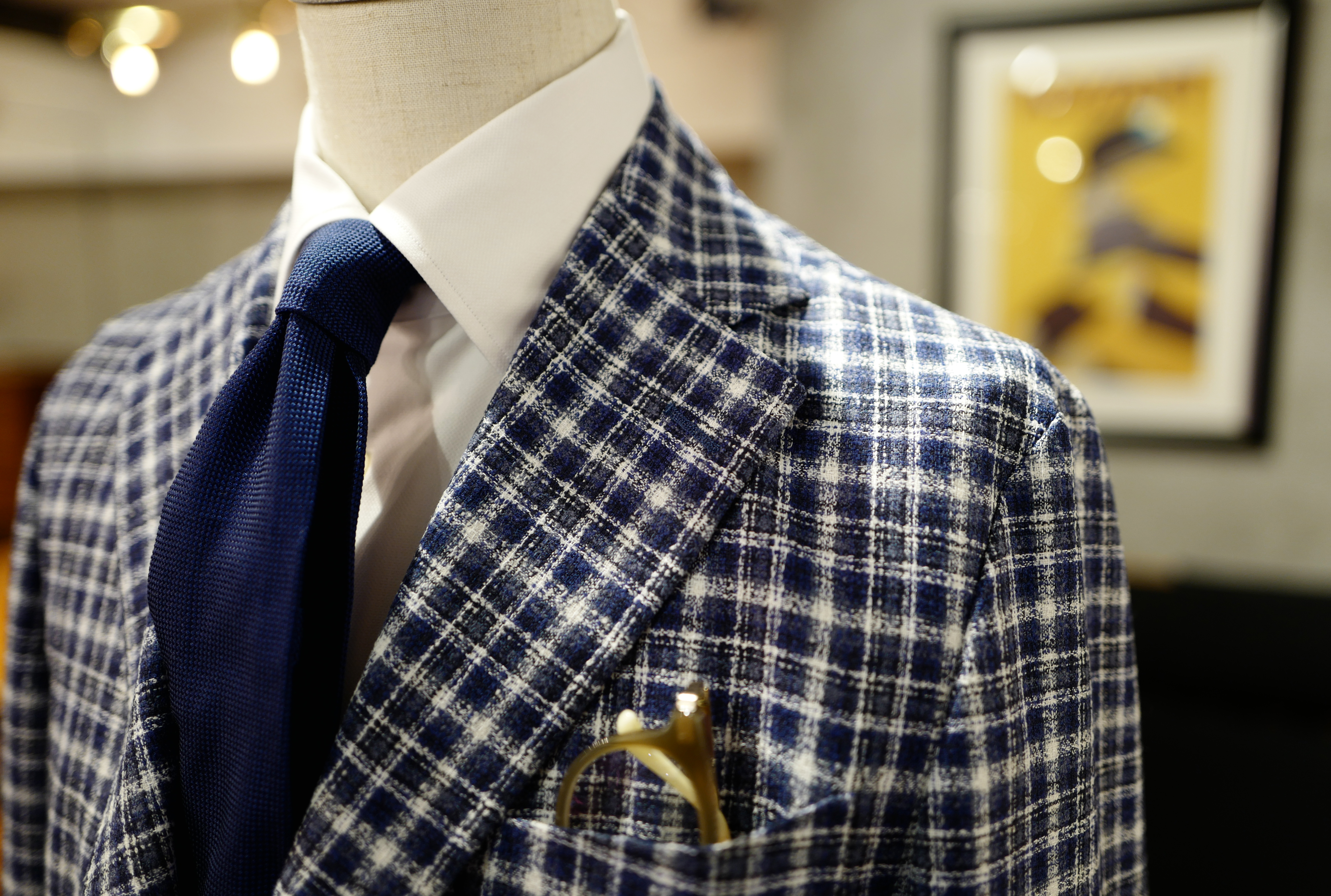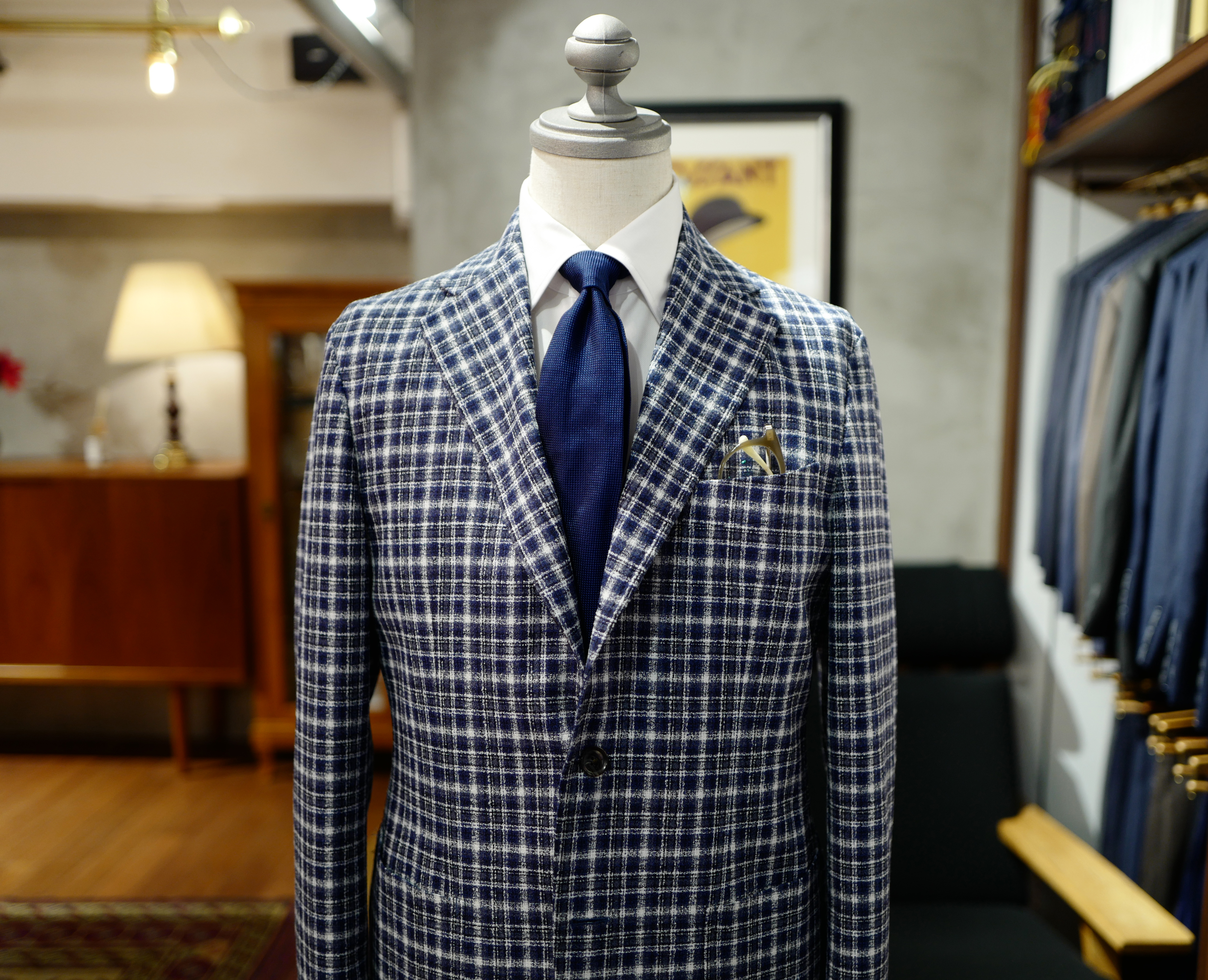 さて、私とGiotto宮原の2人が大注目していた生地のジャケットが仕上がってまいりました。私の大学時代の先輩から「お任せでジャケットを創ってほしい」とのご要望がありましたので、迷わずこの生地をセレクトさせていただきました。
