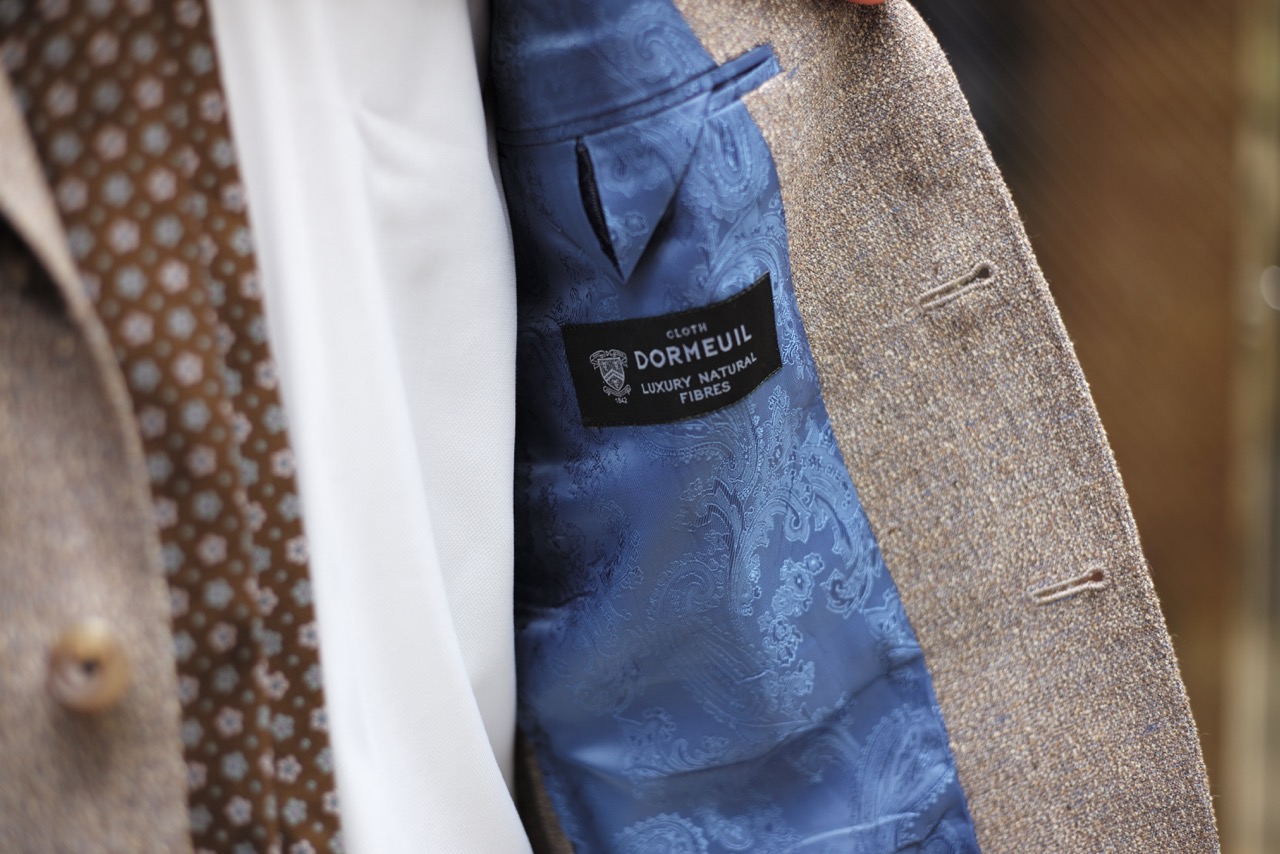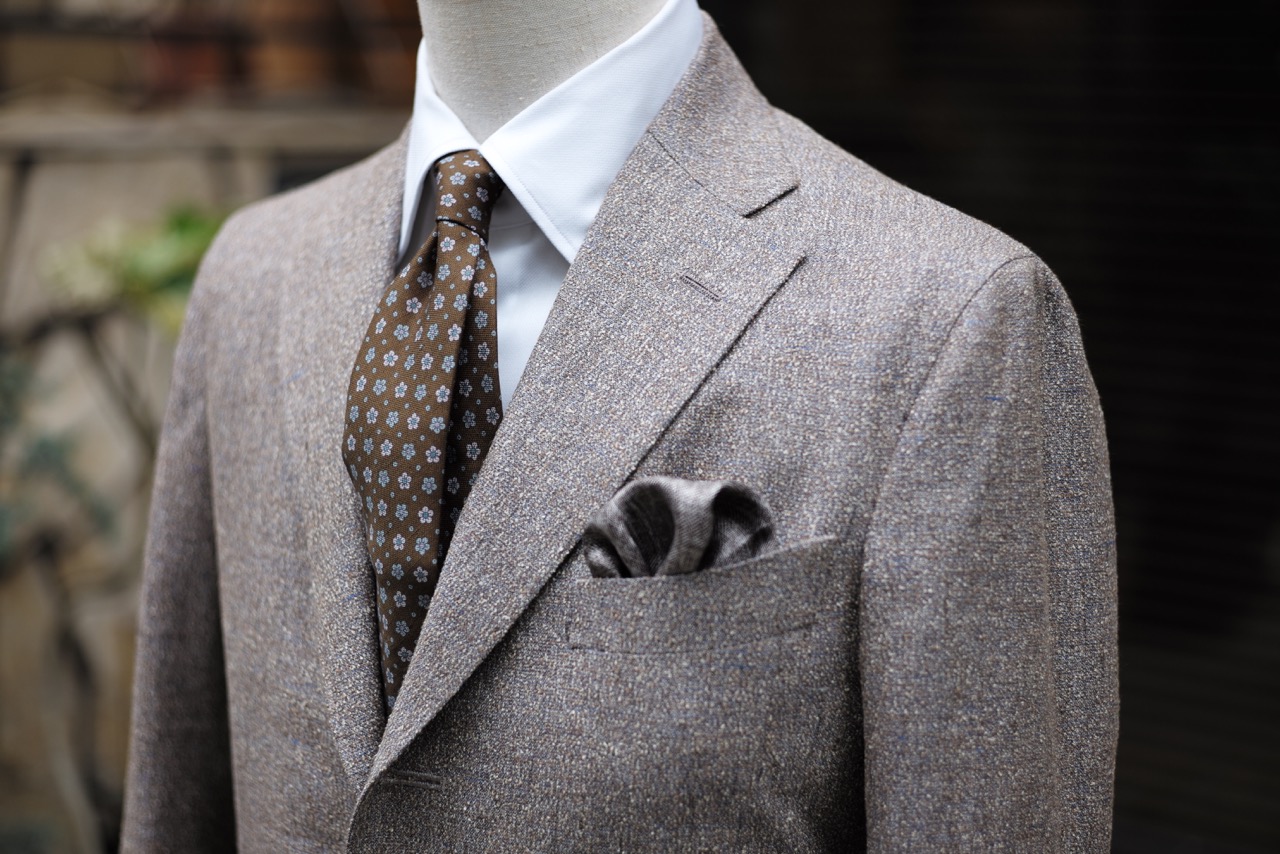 本日は仕上がってまいりましたオーダージャケットを紹介させていただきます。なかなかお目にかかれないような素材感が魅力の1着です。
