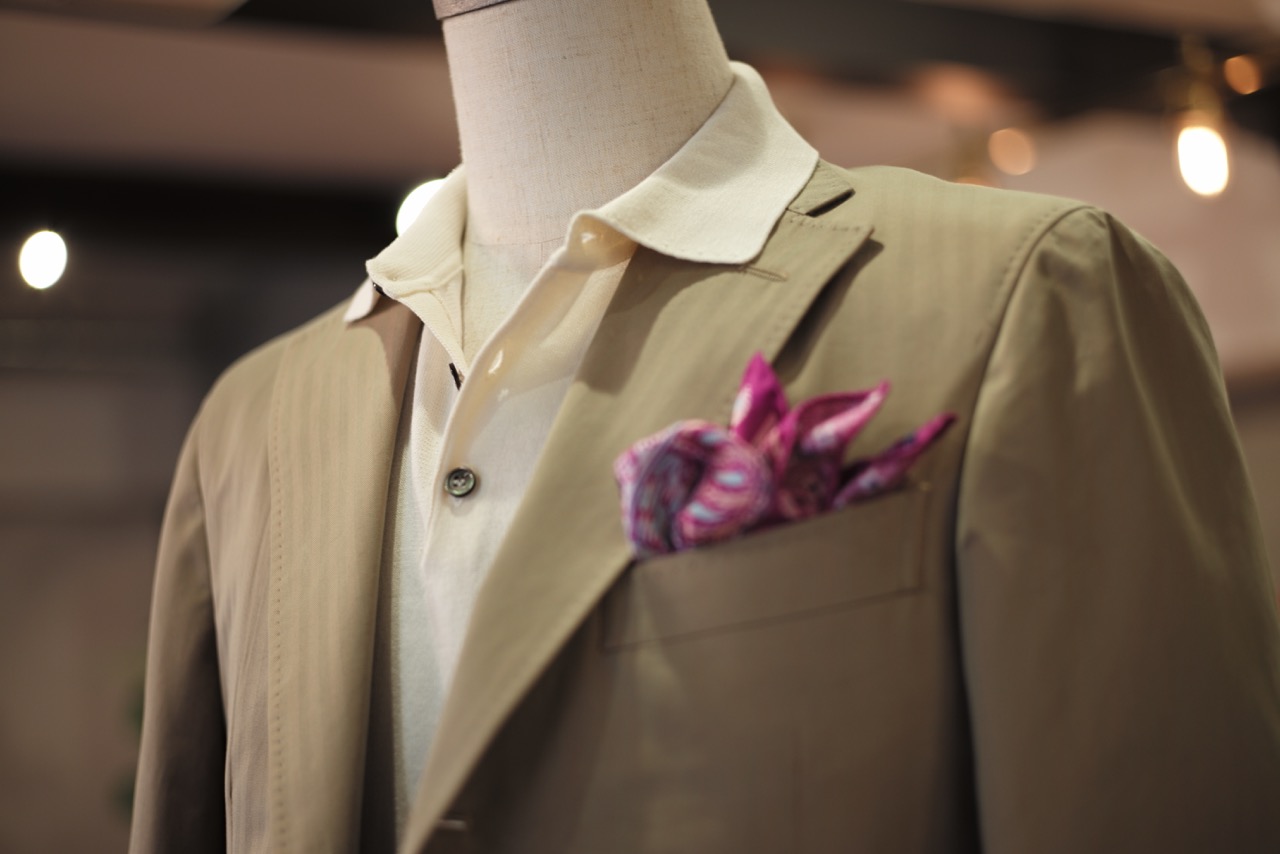 コットンソラーロで間違いなく一番人気のカチョッポリ。つい先日紹介させていただきたスーツもこちらの生地でした。人気の秘密はこの艶っぽさと着心地の良さ。同じコットンでもなぜここまで着心地が良いのか。他ブランドでは体現できません。さぁ気になる方はぜひお早めに。