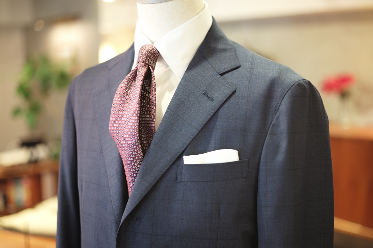 さて、本日も仕上がりましたオーダースーツを紹介させていただきます。当ブログでは可能な限り、多くの皆様のスーツをご紹介できればと考えております。生地バンチの小さな生地見本から、仕上がりのスーツを想像するのは非常に難し作業です。ぜひ紹介させていただくスーツをご参考にイメージをしてみてください。