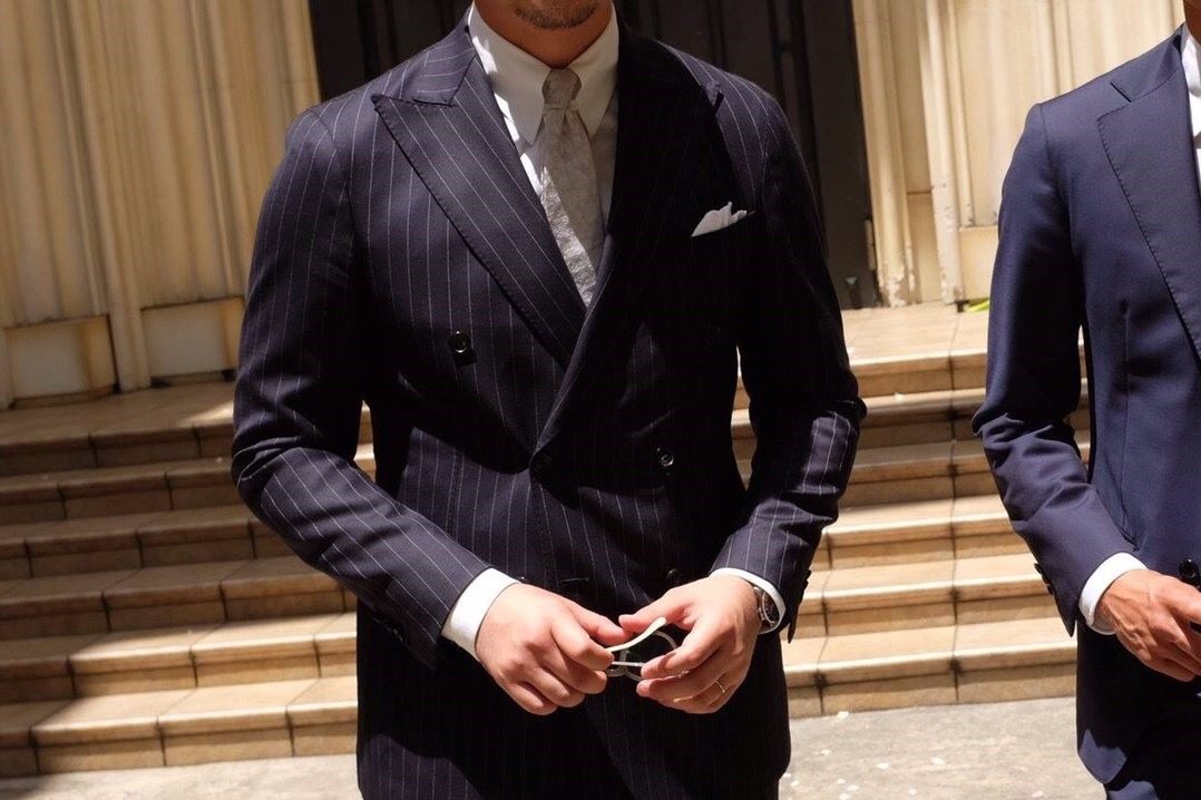 私もダブルのスーツは威厳がある空気に憧れて、好んで着用します。シングルスーツに物足りなさを感じたら、今すぐにでもトライです。強くオススメ致しますよ。