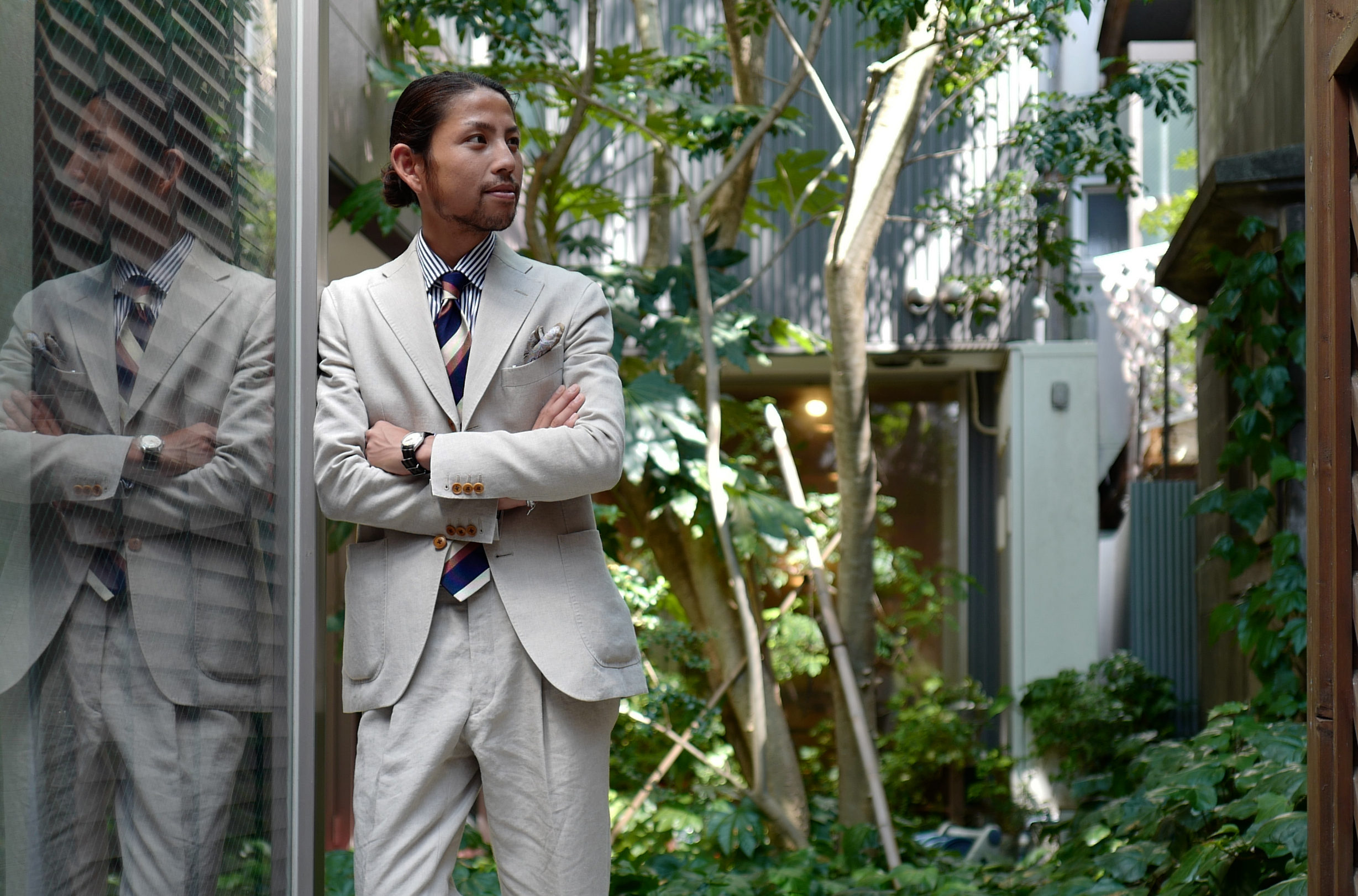 着こむことで深まる独特の風合いやシワを作り出すリネンは、リラックス感とエレガンストさを兼ね備え、男性の貫禄をも生み出すような気がします。清涼感に富む着心地は日本の夏に最適ですし、きっと年を追うごとに手放せなくなるのではないかなと思います。いいですね、リネンスーツ。