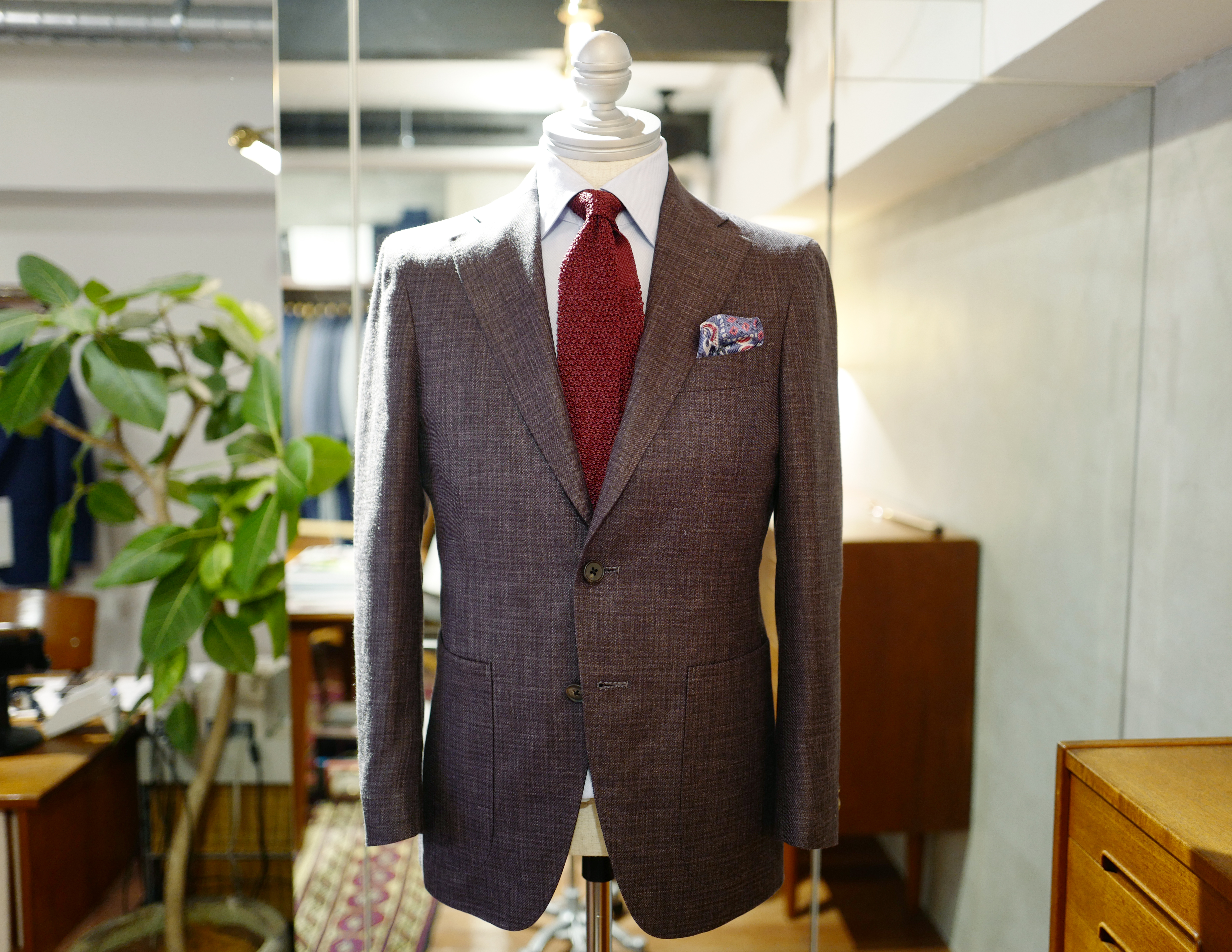 さぁ夏も本番。本日は今時期に丁度良い素材のオーダージャケットを紹介させていただきます。色は渋みのあるグレイッシュなブラウンですが、見た目以上に軽く、そして羽織りやすい1着に仕上がりました。