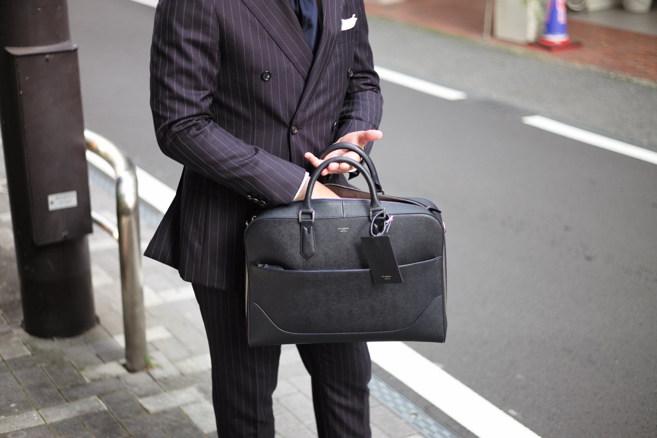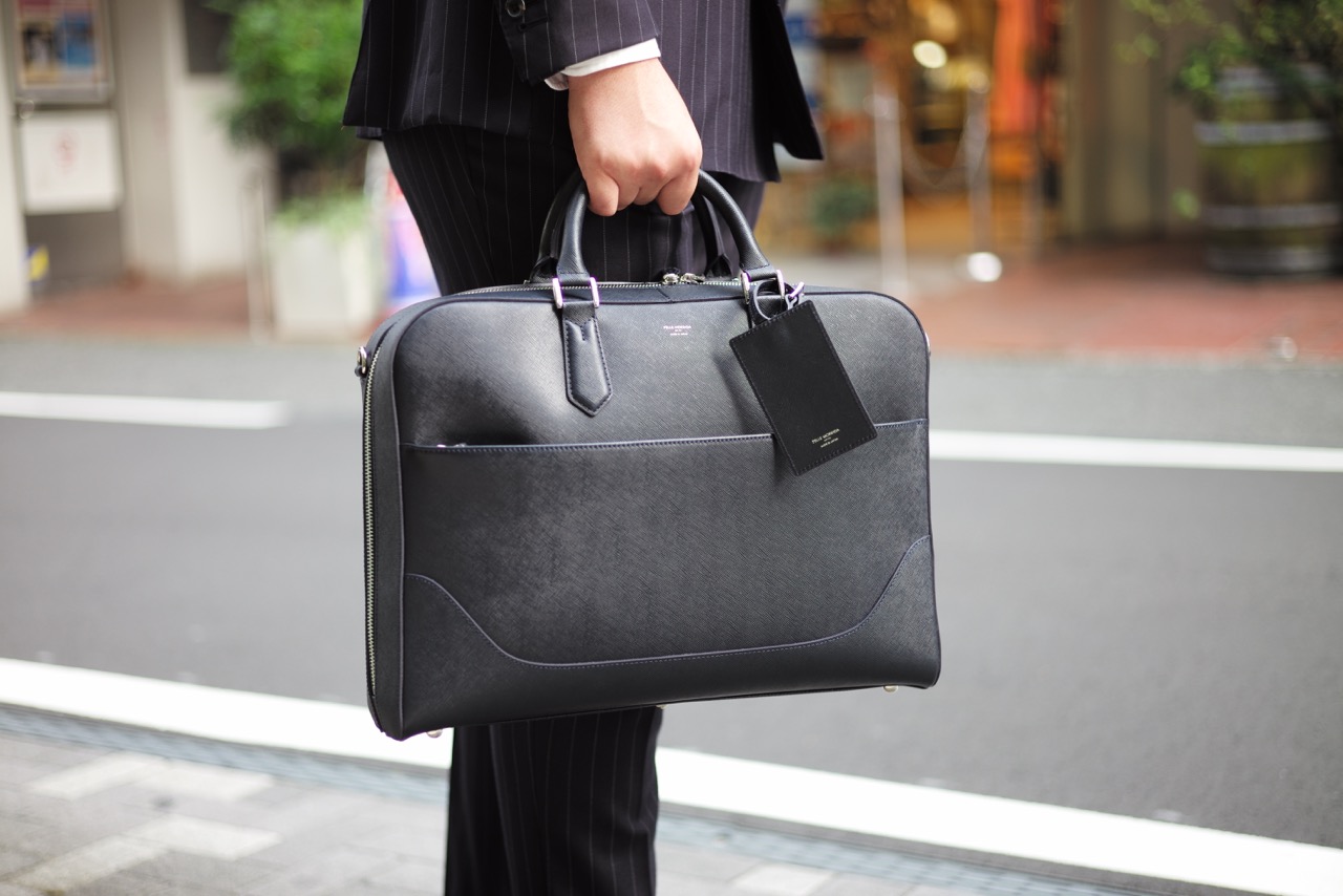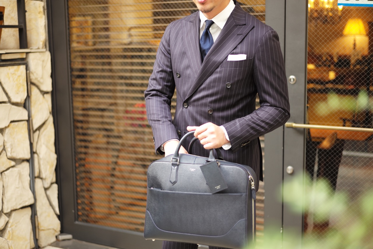 スマートかつドレッシーな顔つきのバッグには、やはりジャストサイズのオーダースーツが良く似合います。この見た目だけでも信頼感や紳士的な雰囲気が相手に伝わるのではないでしょうか。ぜひスーツにはこのバッグを。