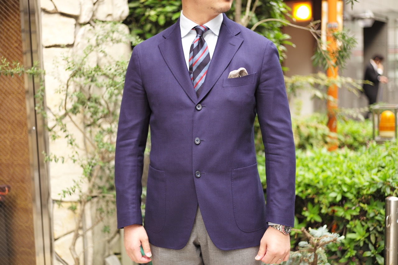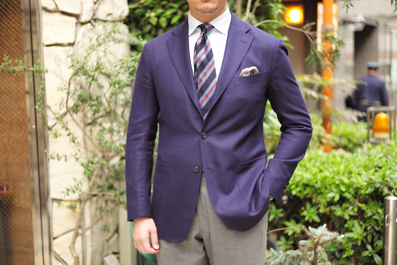 そして2枚目の写真が正しいボタンの留め方。スッキリとした印象であるのに、貫禄をも感じます。基本的には1番下のボタンは必ず開けること。3つボタンの際は、段返りのもは中ひとつ、そうでないものは上2つ掛け。2つボタンは上ひとつ掛けです。