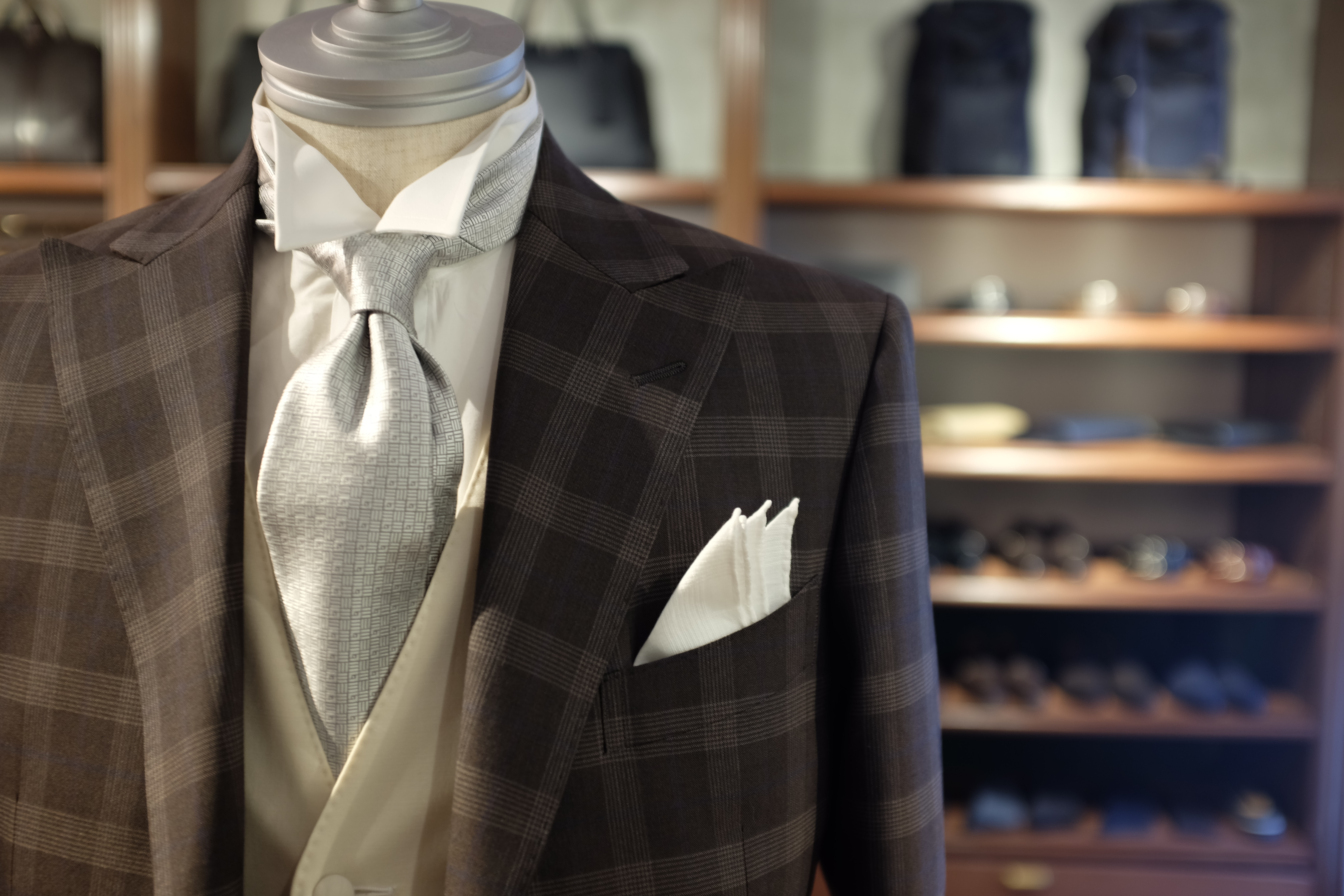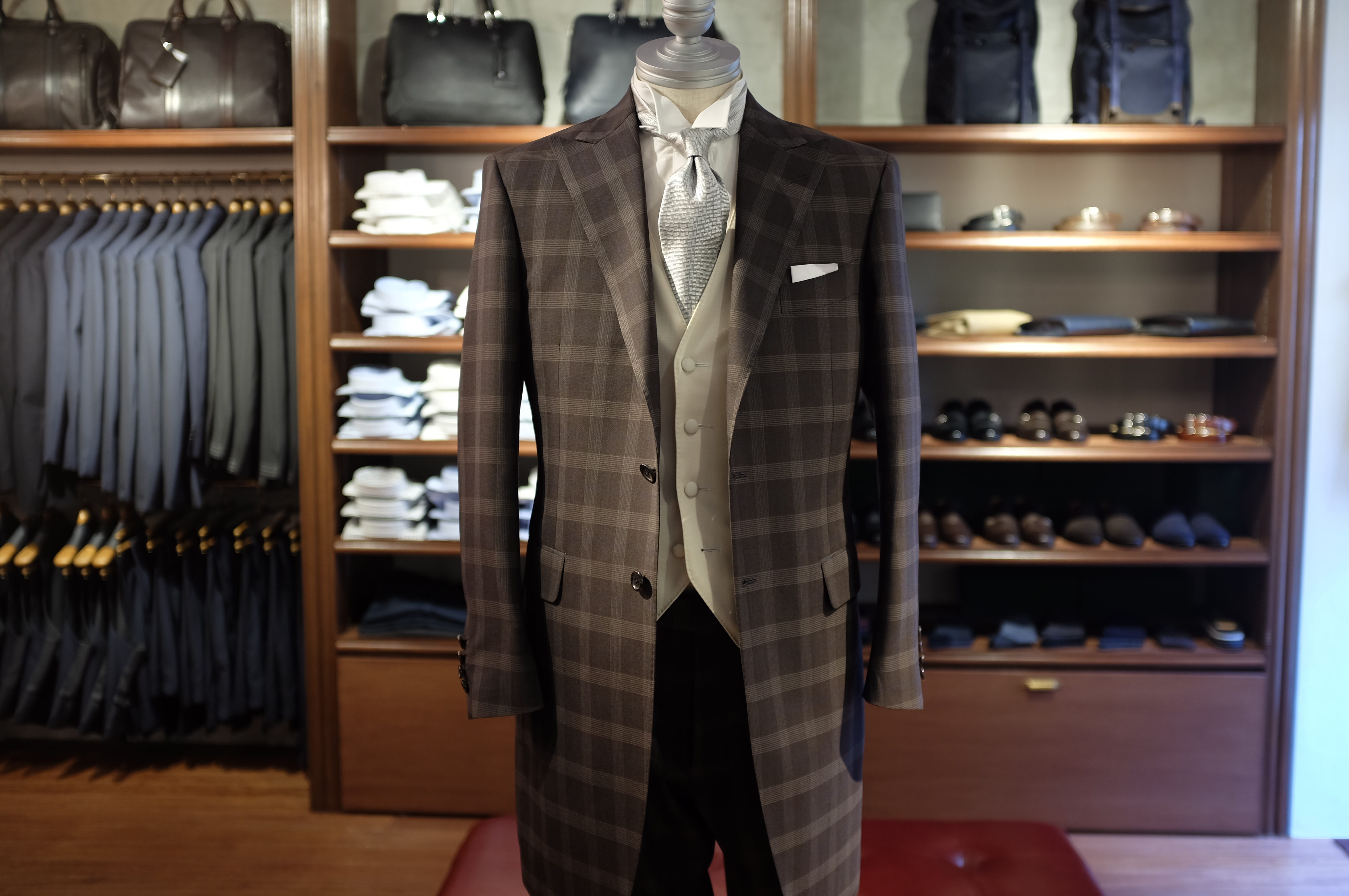 本日も目を引く1着が仕上がってまいりました。4月に挙式を控えるS様のスーツリメイク型オーダーモーニングです。